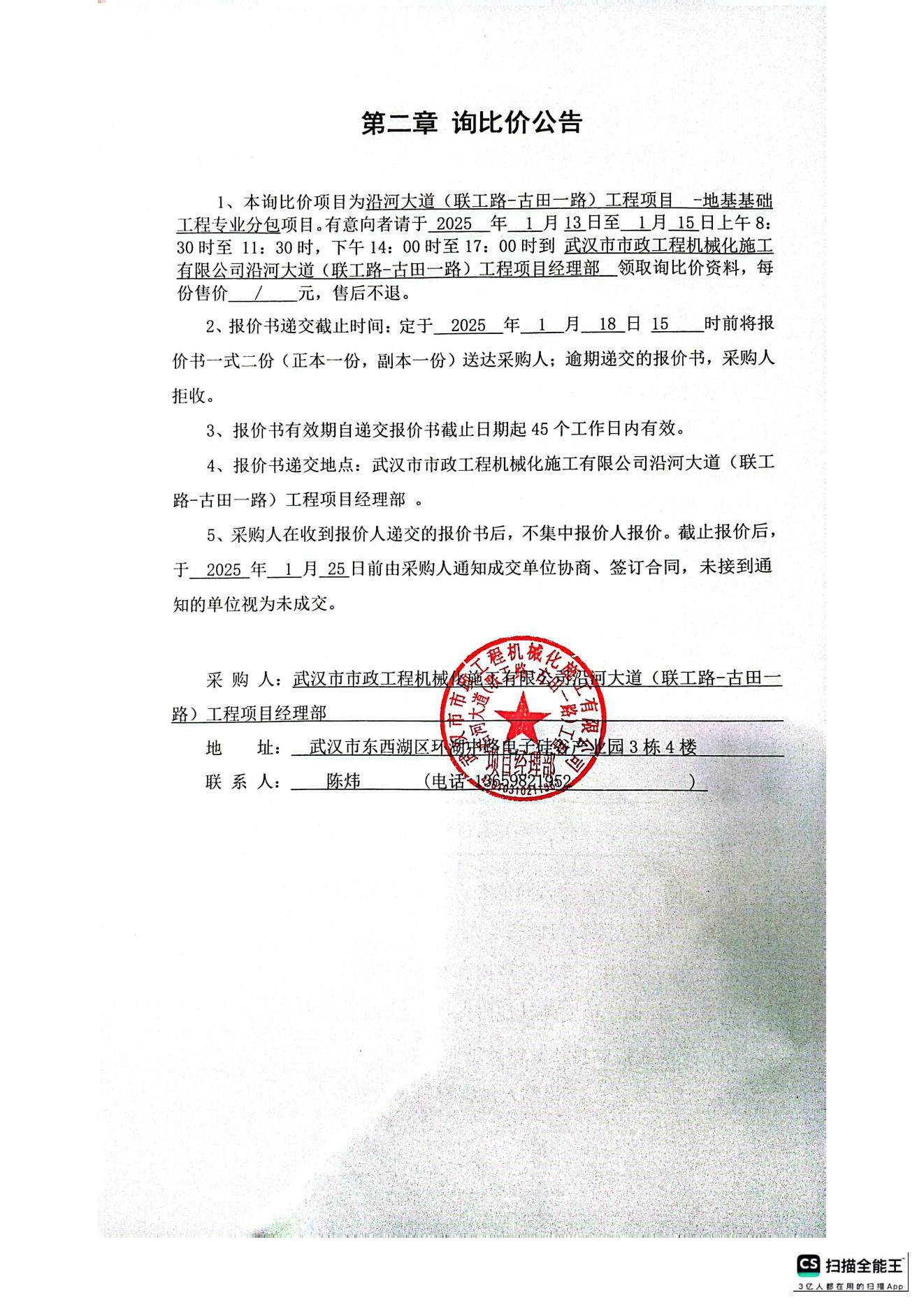 沿河大道(聯(lián)工路-古田一路)工程項目-地基基礎工程專業(yè)分包詢價公告