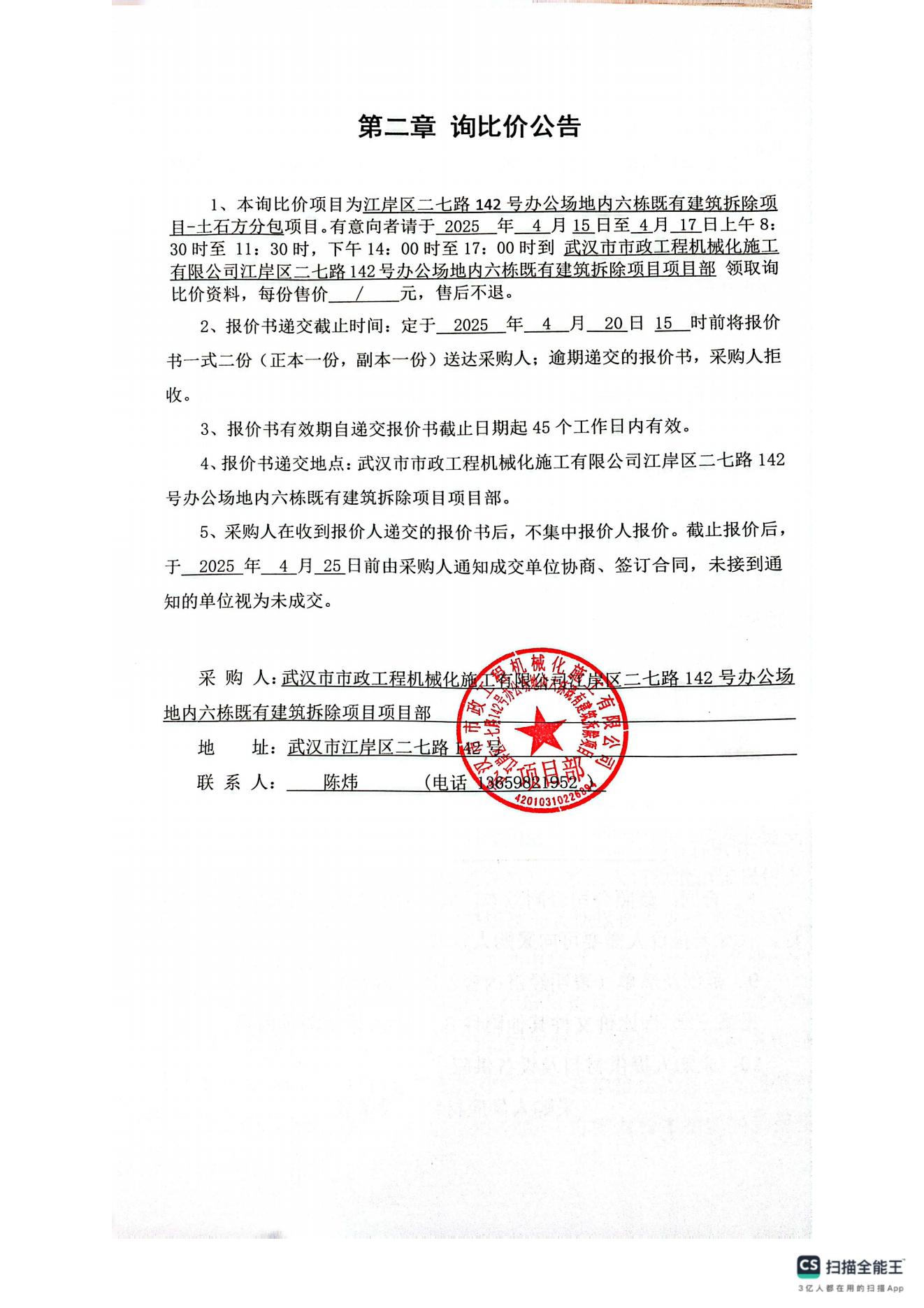 江岸區(qū)二七路142號(hào)辦公場(chǎng)地內(nèi)六棟既有建筑拆除項(xiàng)目-土石方分包詢價(jià)公告