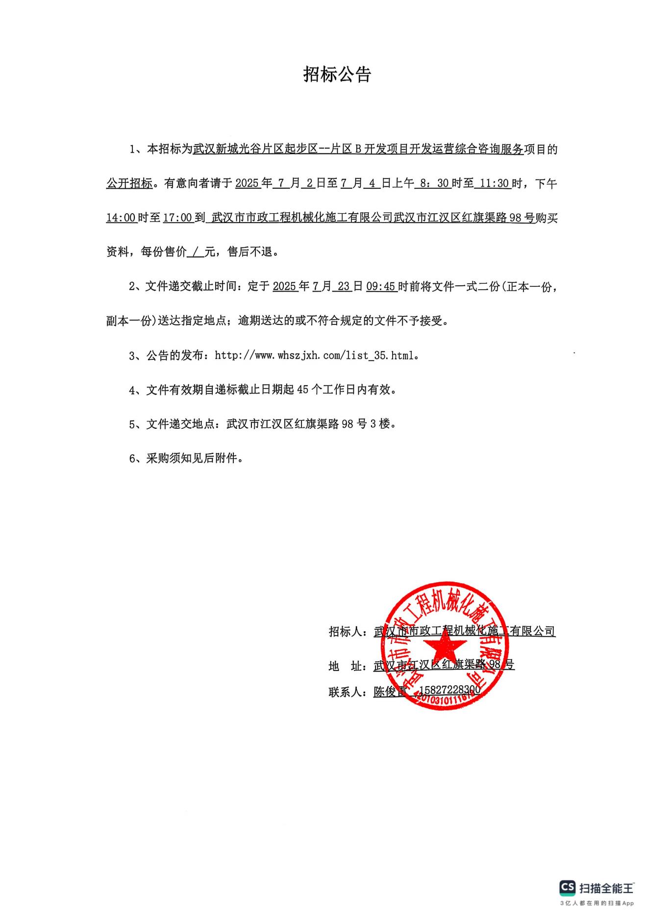 武漢新城光谷片區(qū)起步區(qū)--片區(qū)B開發(fā)項目開發(fā)運營綜合咨詢服務(wù)招標(biāo)公告
