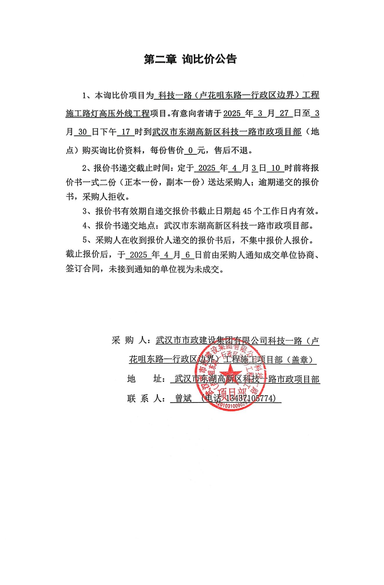 科技一路(盧花咀東路—行政區(qū)邊界)工程施工路燈高壓外線工程詢價(jià)公告